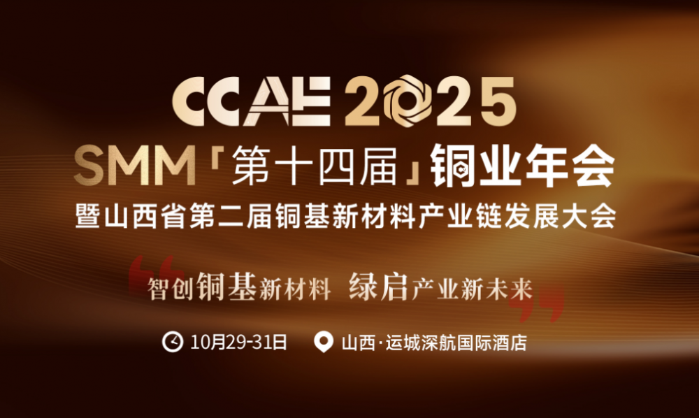 CCAE 2025SMM(第十四届)铜业年会暨山西省第二届铜基新材料产业链发展大会于2025年10月29日至31日将在山西省运城市举办。