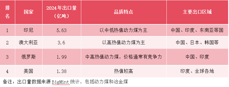 最后对比一下全球主要的动力煤主要出口国和各自的主要出口区域: